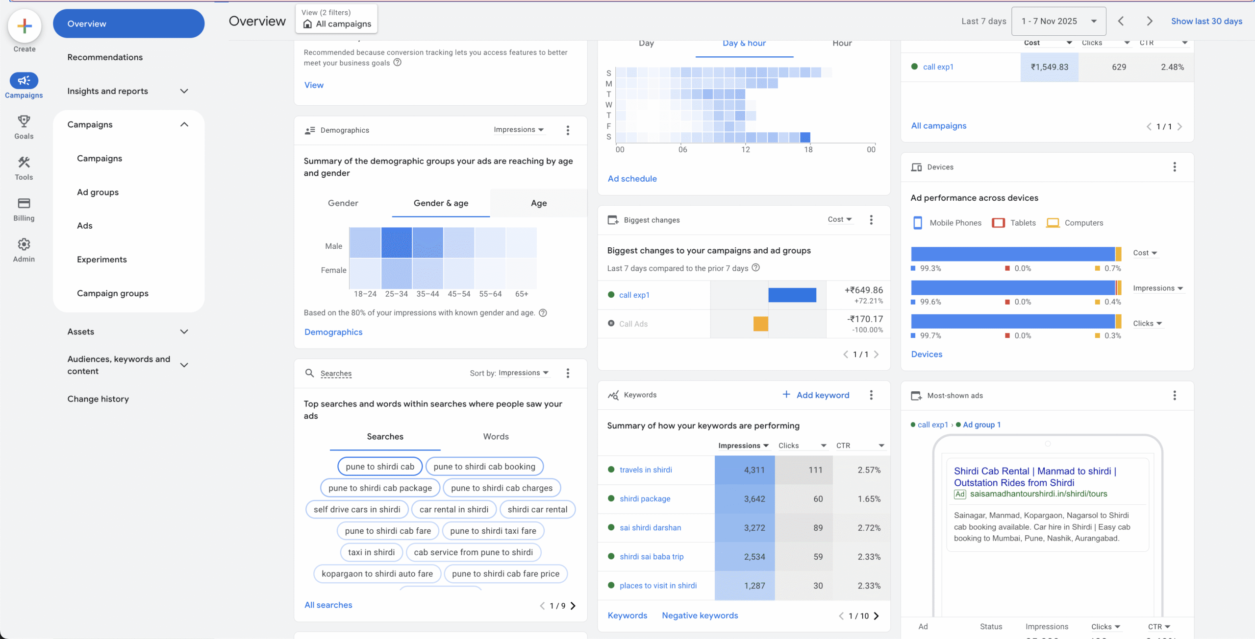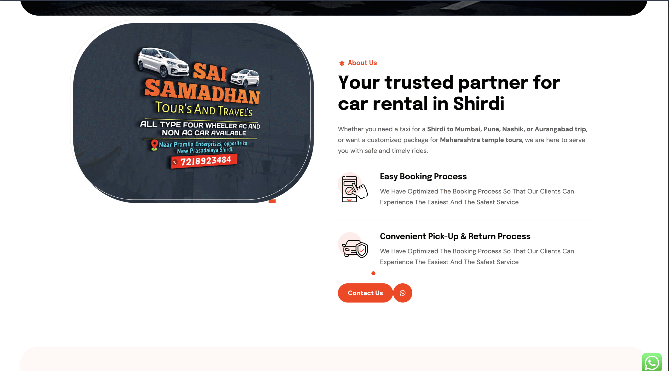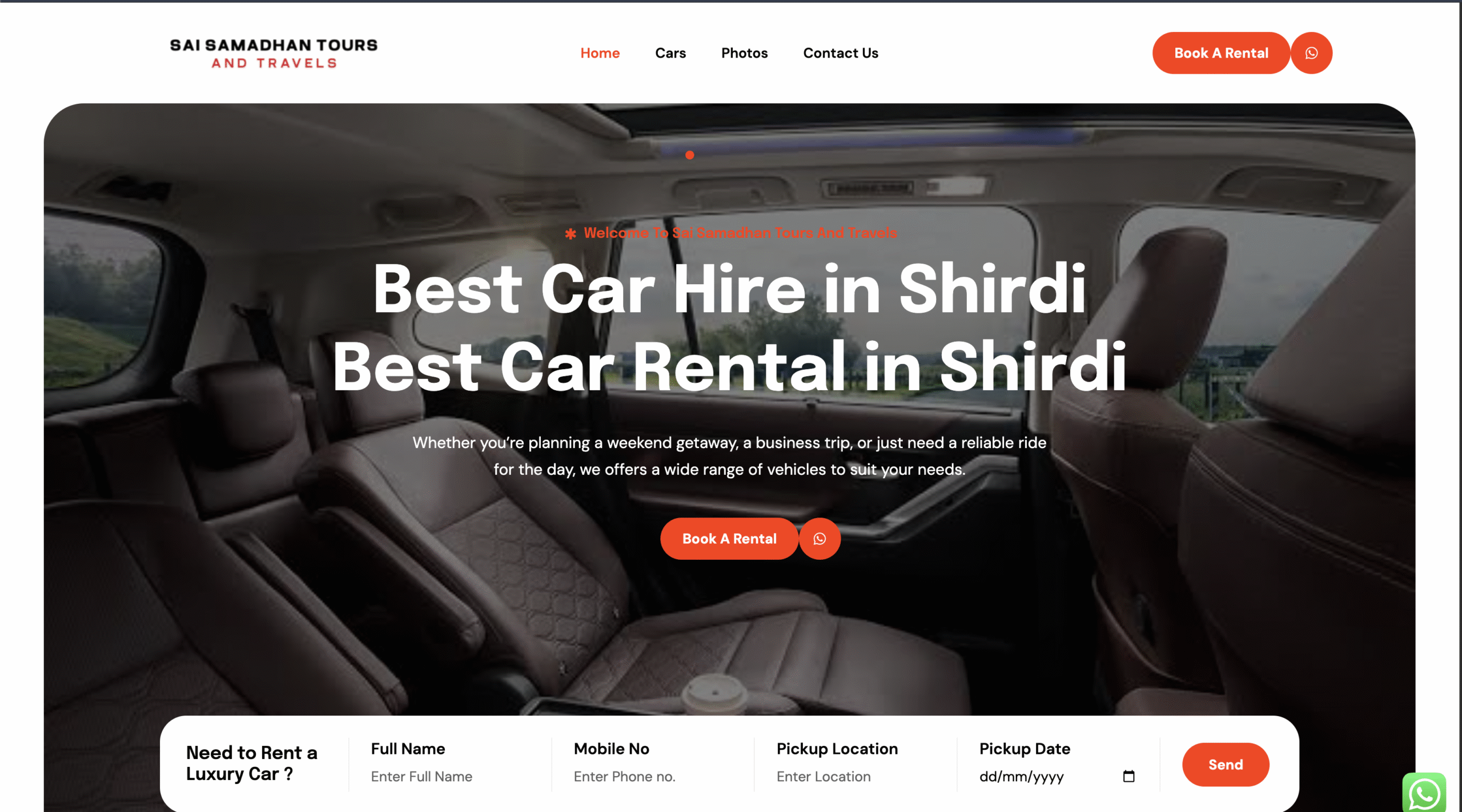 Developed the website, Google Business profile and paid-ads strategy for Sai Samadhan Tours & Travels (Shirdi) to boost online visibility and bookings.